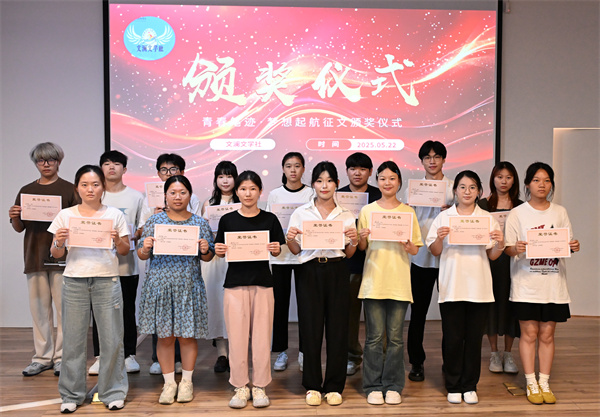 颁奖现场气氛热烈,通识教育学院院长曾轩招、文澜文学社指导教师罗俊英、吴小琴为获奖选手颁发荣誉证书。曾轩招院长还寄语同学们“要保持创作热情,在文学道路上继续深耕,书写属于自己的精彩人生!”