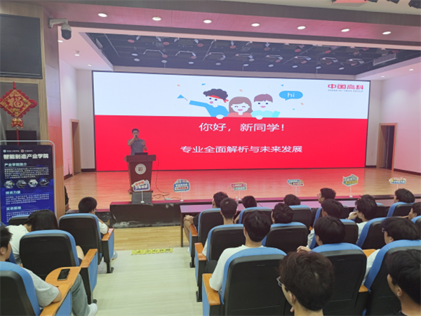 讲座中,中国高科集团产教融合事业部区域总监陈道涵结合中国高科在职业教育领域的丰富经验,从行业视角为同学们提出宝贵的学习建议。陈总监强调,智能制造是一个多学科交叉、快速迭代的领域,同学们应注重理论与实践相结合,积极考取职业技能证书,主动参与企业实习,不断提升自身综合竞争力。