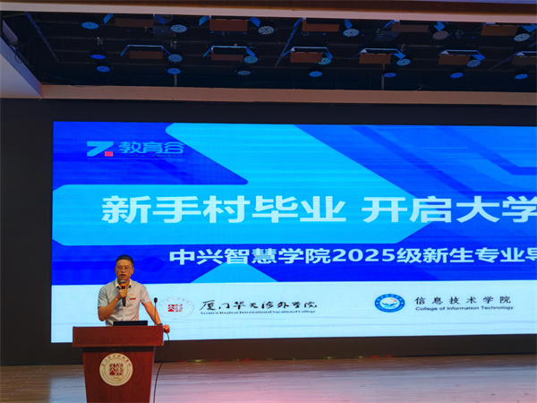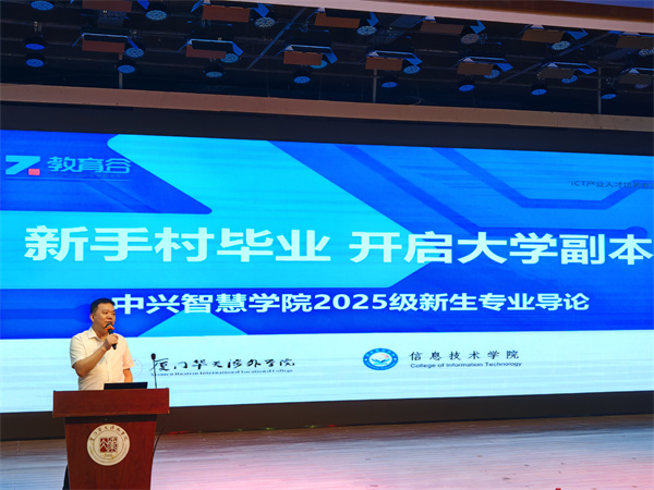 9月4日上午,我校信息技术学院中兴智慧学院为2025级计算机应用技术与智能互联网络技术专业新生,举办了一场以“新手村已毕业,开启大学副本”为主题的专业导论讲座。